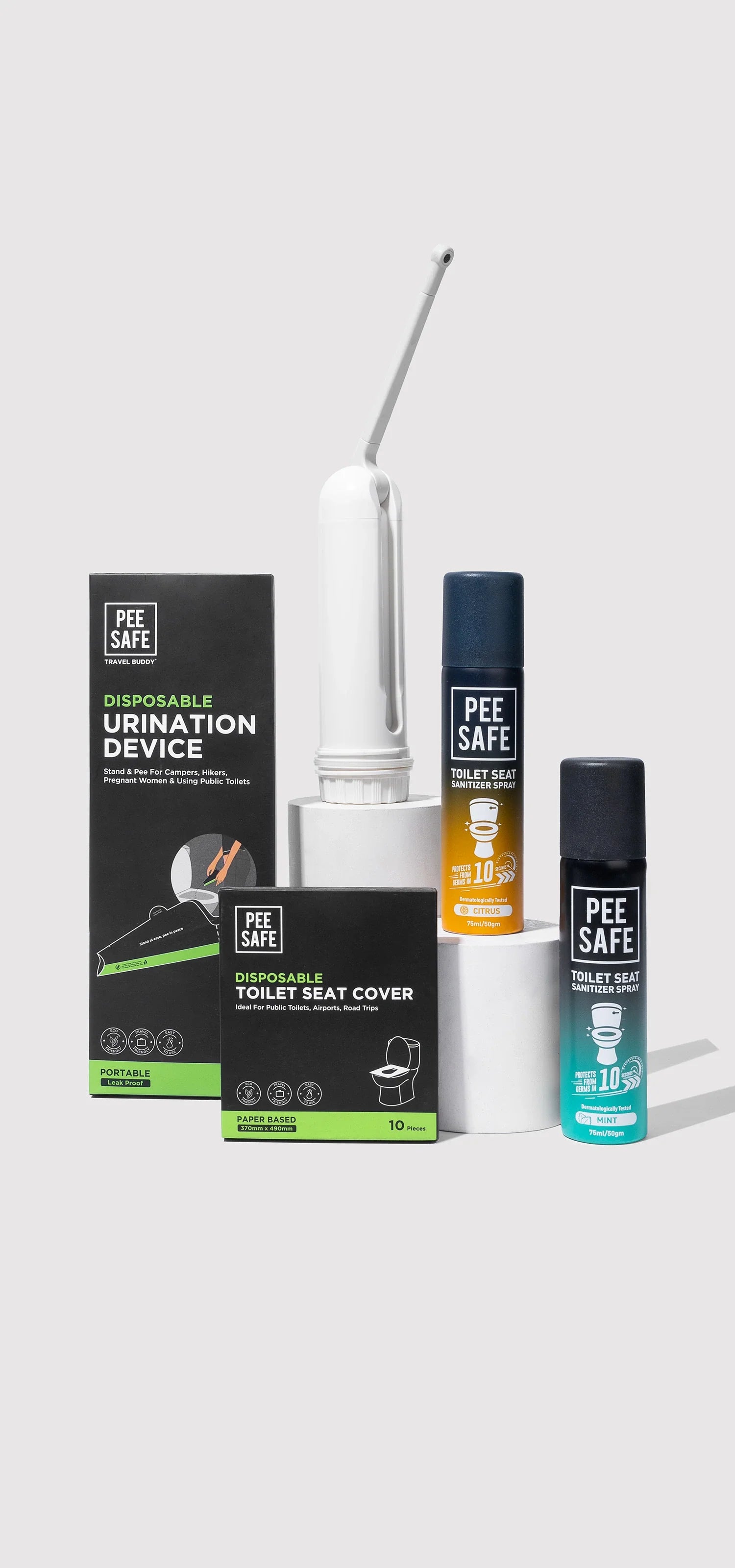 Our story began with a simple road trip and an unfortunate UTI which inspired our founders, Vikas and Srijana Bagaria, to innovate. Their solution and our flagship product, the Toilet Seat Sanitizer Spray, has since transformed public restroom hygiene for millions of women.