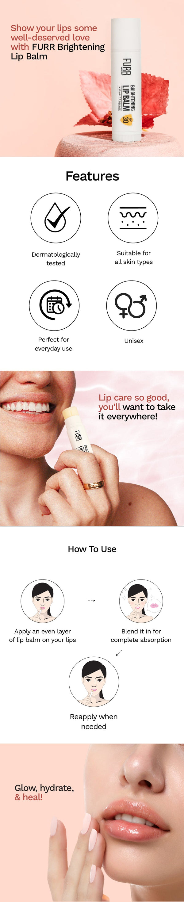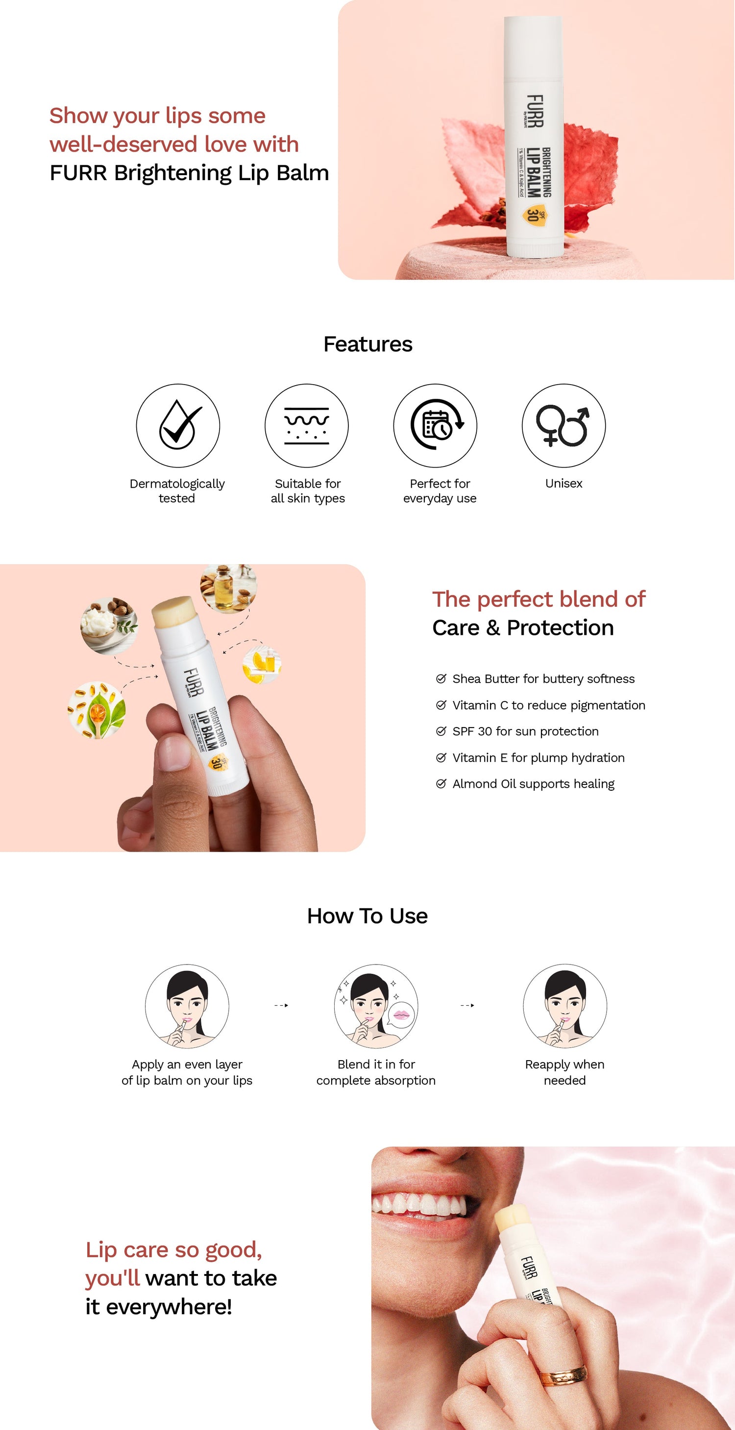 Lip Balm SPF 30 | Heals, Hydrates & Softens | Vitamin C Reduces Pigmentation | SPF 30 For Sun Protection | Almond Oil, Shea Butter, Vitamin E Infused