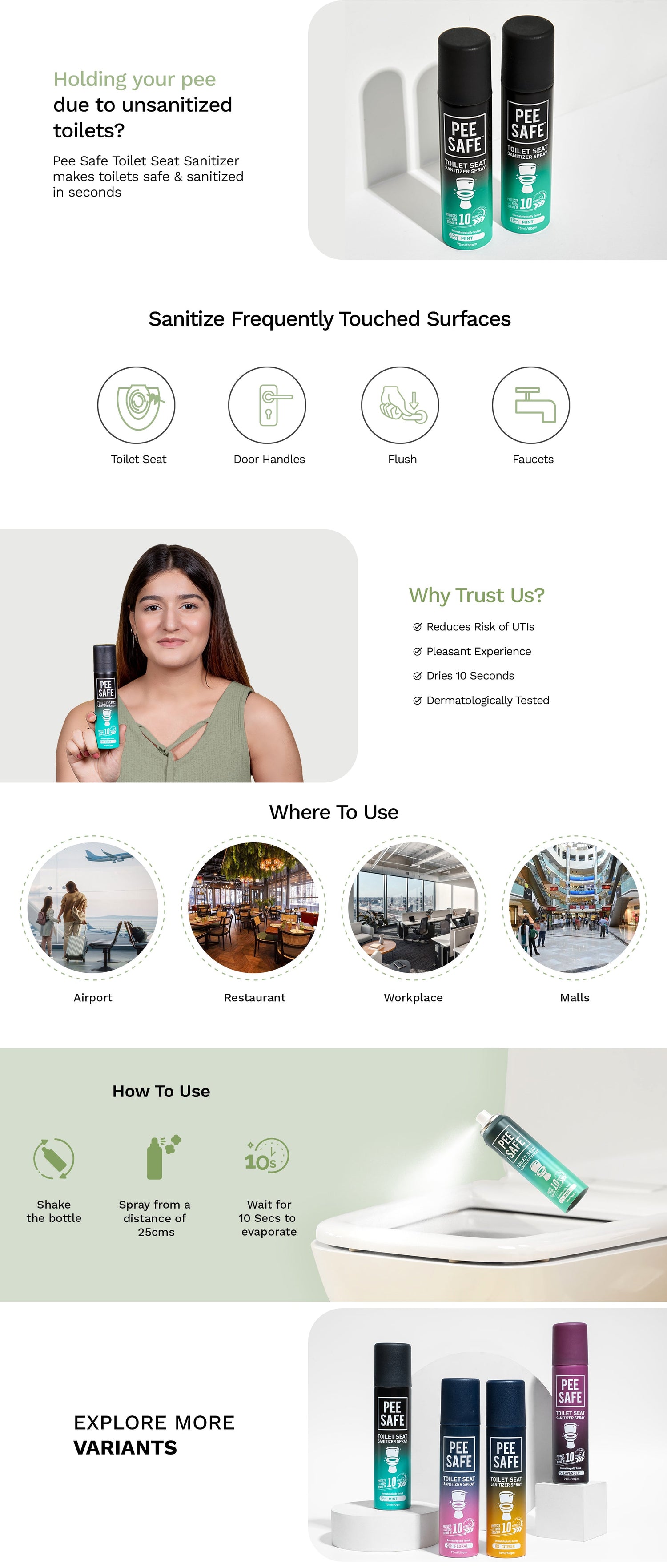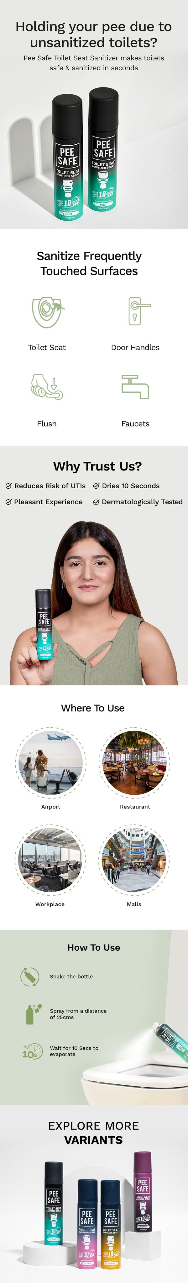 Toilet Seat Sanitizer Spray (Mint) - 75 ML (Pack of 3)