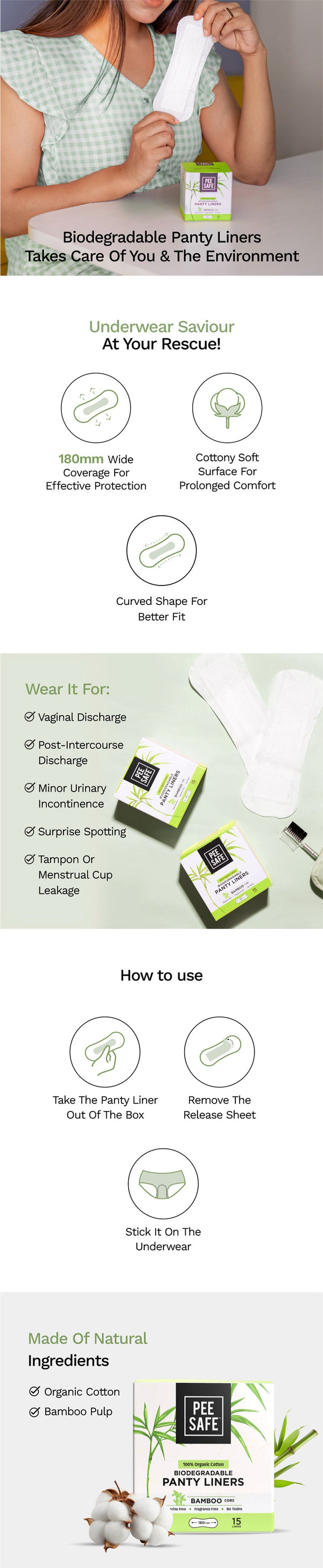 100% Organic Cotton With Extra Cottony-Soft Curved Shaped Surface For Vaginal Discharge