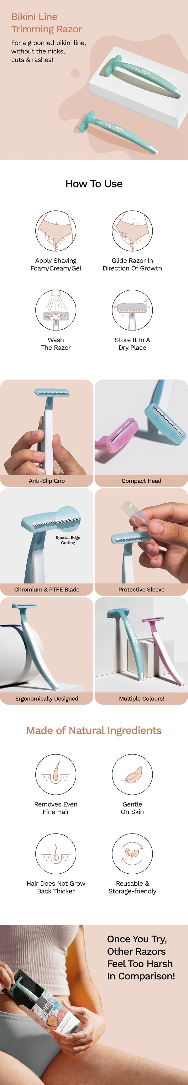 A Specially Designed Razor With Compact Head For The Intimate Area To Prevent Any Cuts Or Bumps
