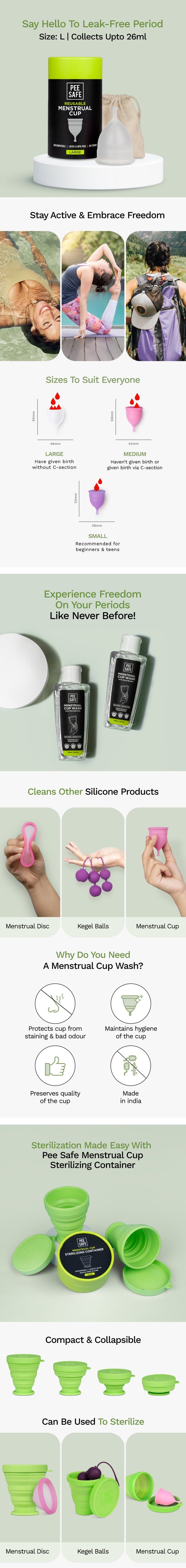 Menstrual Cup(L), Cup Wash & Cup Sterilizing Container